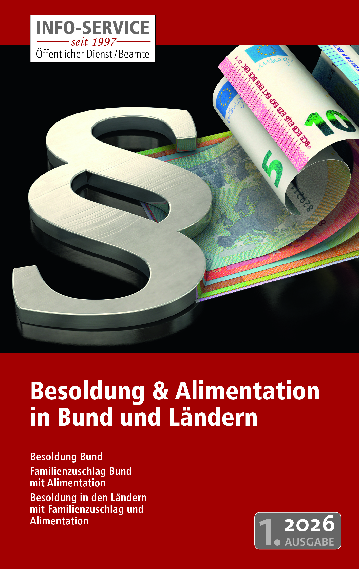 Neu: Besoldung & Alimentation in Bund und Ländern Leider erst im Frühjahr 2026 wird die Bundesregierung einen Gesetzentwurf vorlegen, mit dem das Tarifergebnis vom Frühjahr 2024 auf den Beamtenbereich des Bundes übertragen werden soll. Dabei soll die Besoldung neu justiert werden (u.a. mit einer neuen Besoldungstabelle). Daneben soll endlich die amtsangemessene Alimentation verfassungskonform umgesetzt werden. Beamtinnen & Beamte (auch Ruhestandsbeamte) des Bundes können mit erheblichen Nach-zahlungen rechnen. Die Medien schreiben, dass jeder Bundesbeamte zwischen 3.000 und 13.000 Euro an Nachzahlung erhalten wird. Bei zwei und mehr Kindern wird dieser Betrag noch höher liegen. Zum Hintergrund: im November 2025 hatte das BVerfG entschieden, dass die Beamtenbe-soldung im Land Berlin für die Jahre 2008 bis 2020 in den Besoldungsgruppen A nachzuzahlen ist, weil das Beliner Gesetz „weit überwiegend verfassungswidrig“ und nicht „amtsangemessen“ war. Das BVerfG hat dem Land Berlin aufgegeben, die Besoldung bis März 2027 neu zu regeln. Es wird erwartet, dass die Bundesregierung dieses Karlsruher Urteil bei ihrem Gesetzenwtwurf zu berücksichtigen. Der INFO-SERVICE wird eine rund 100-seitige Broschüre herausgeben, sobald der Gesetzentwurf vorlegt (wahrscheinlich im 2. Quartal 2026). Die Broschüre wird auch den Sachstand der Länder beinhalten. Hier zur (Vor)Bestellung >>>zum Vorzuugspreis |